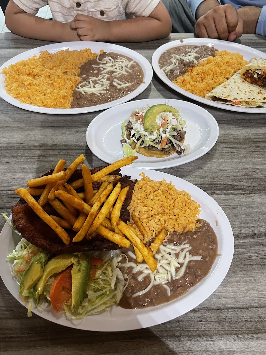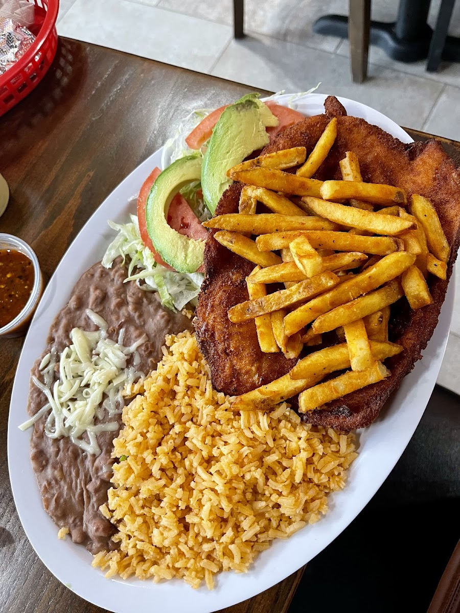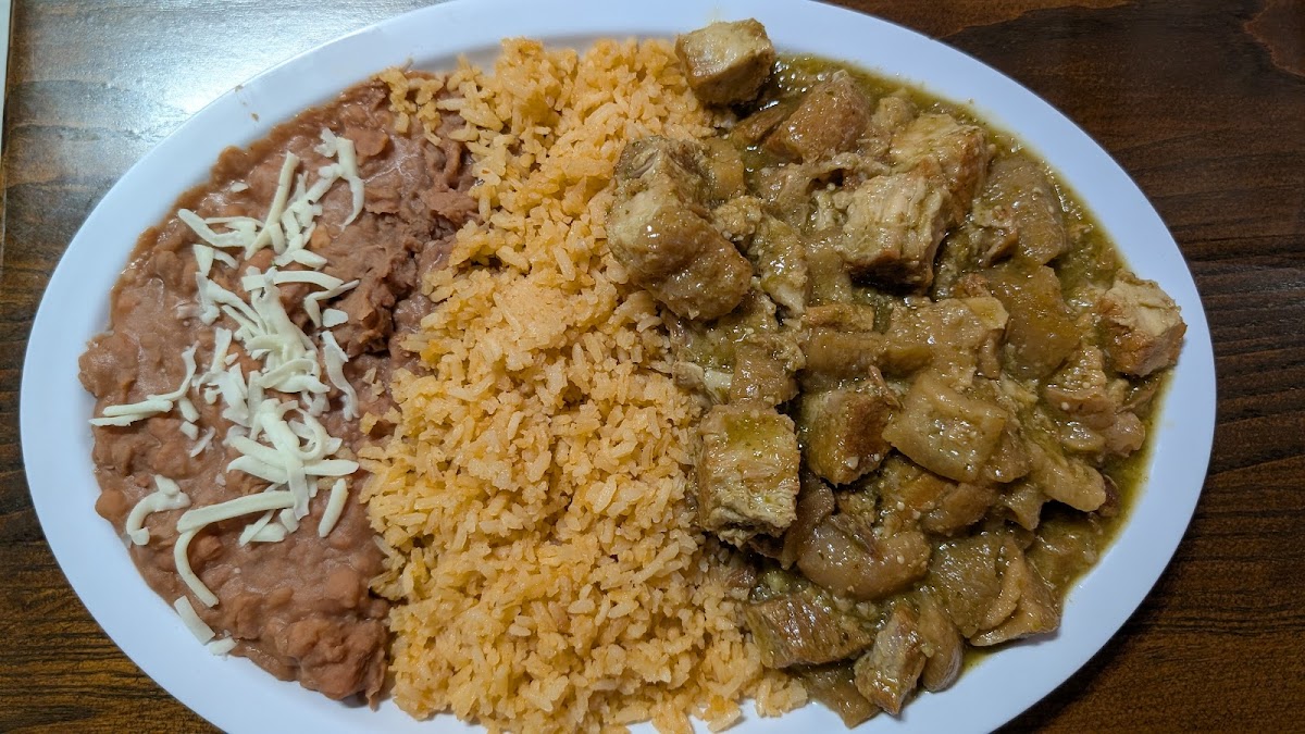 Your choice of eggs with rice, beans, and cheese. Options: Fried, scrambled, with ham, with chorizo, rancheros.